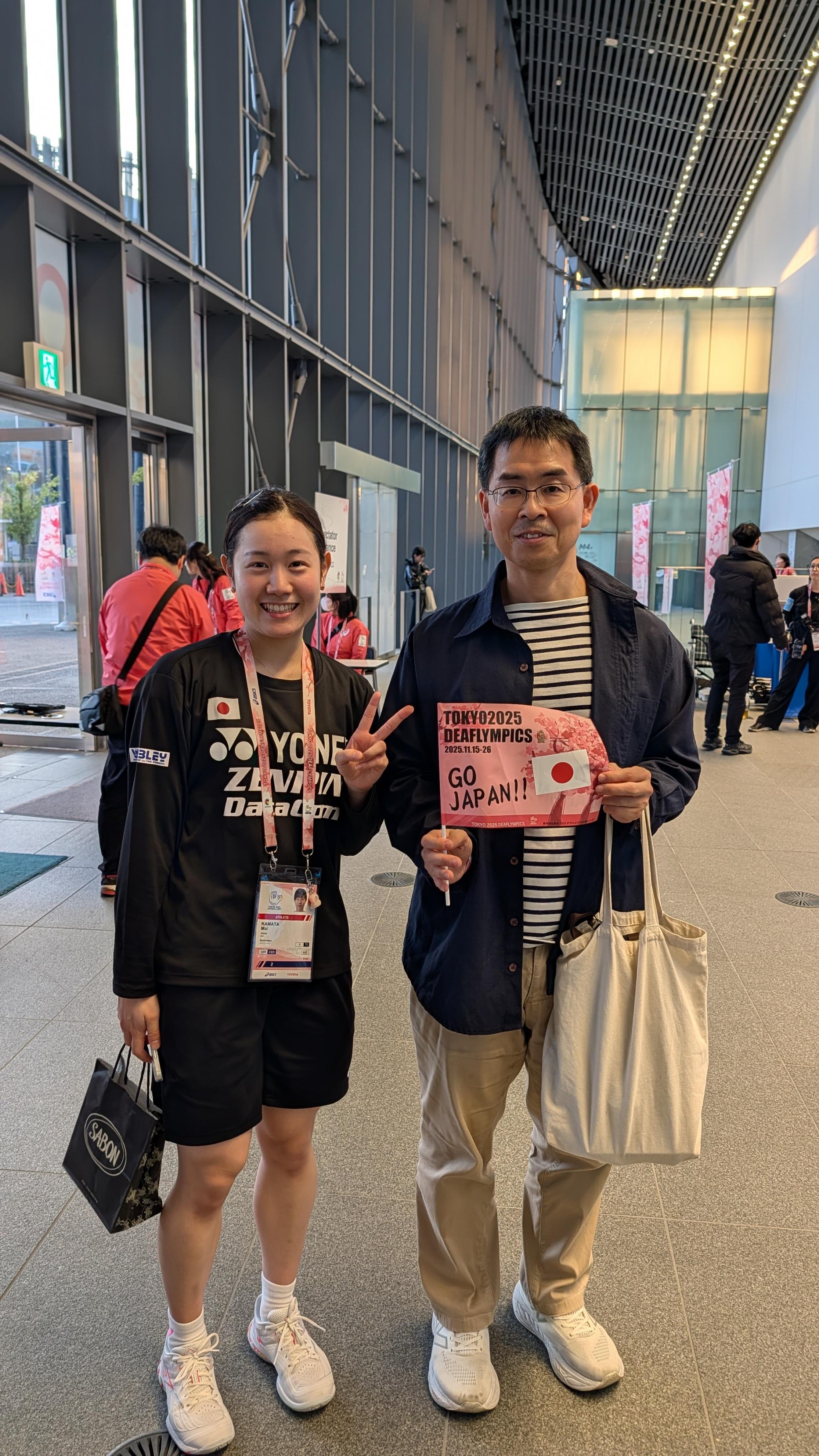 東京2025デフリンピックのバドミントン競技が11/16から東京の調布市の京王アリーナ東京(味の素スタジアムの隣)でスタートし、25期の鎌田真衣さんが女子シングルスの予選リーグに出場。2試合とも勝利しました!