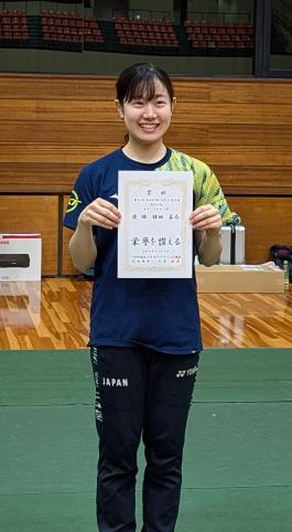 熊本で開催された第21回日本ろう者バドミントン選手権で、この春卒業の鎌田真衣さんが